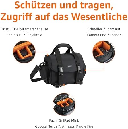CAPAZITÄT: Diese Tasche bietet genügend Platz für einen DSLR-Kamerabody und bis zu 3 Objektive, und reicht bei der gleichen Zeit jenseits all Ihrer fotografischen Ausrüstung, ohne zu groß zu sein. Sie bleibt dabei kompakt und gut gestaltet.