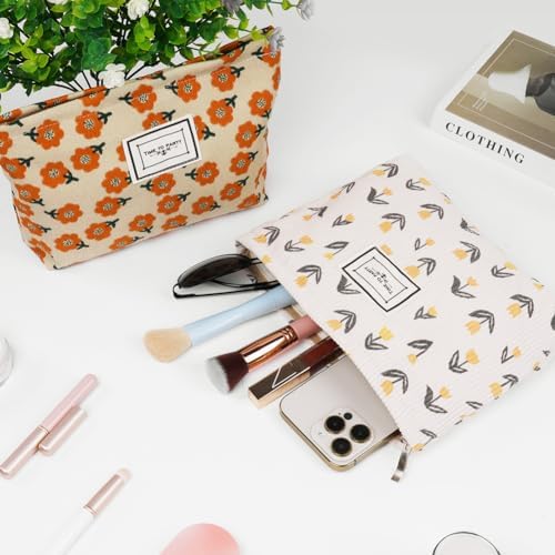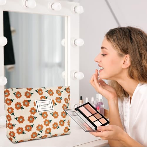 Die wunderschöne Kosmetiktasche ist mit einem lebendigen Blumenmuster gestaltet, das Ihrer Laune einen Kick gibt. Die retrofarbenen Muster machen diese Tasche zu einem einzigartigen Accessoire, das perfekt für exquisiten Kosmetikartikel wie Lippenstifte, Parfüme und Crèmes geeignet ist.