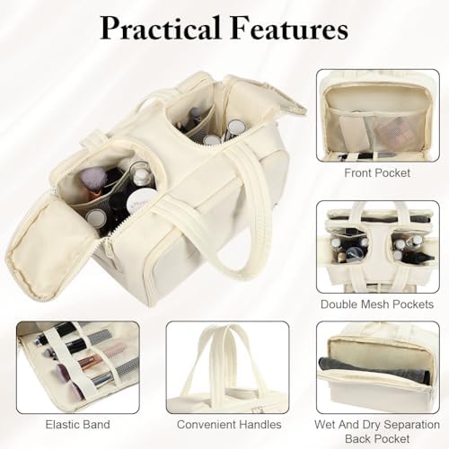 Bequeme Organisation: Mit vier gut gestalteten Taschen bietet unser Kulturbeutel klare Ordnung. Die großen Haupttäler haben ausreichende Öffnungen für Kosmetikflaschen, Netztaschen für aufrechten Platzhalter und eine vollständige Öffnung mit Netztasche in der Vorderau. Die hintere Tasche für Nass- und Trockenartikel sorgt für perfekte Trennung.
