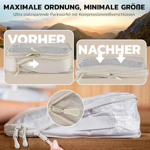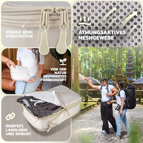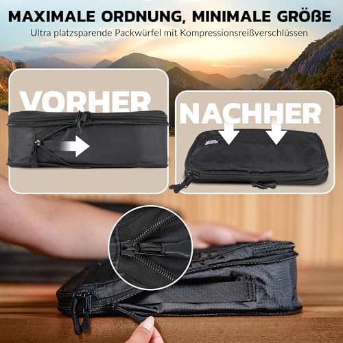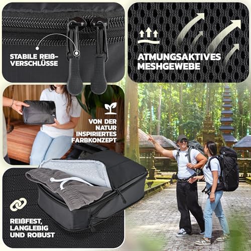🌍 ENTWICKELT FÜR ECHTE BACKPACKER – die Packing Cubes sind leicht, robust & langlebig und so entworfen, dass sie das Packvolumen in jedem gängigen Travel Backpack optimal nutzen.