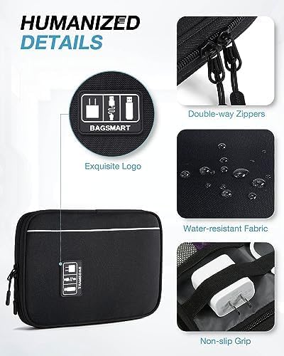 Keine Chaos: Netzfach mit Reißverschluss bietet Platz für flache Powerbanken, 2,5-Zoll-Festplatten, 6 einfach zugängliche Netztaschen zur Aufbewahrung von Flash-Disk, Reise-Routern, USB-Sticks, Handy-Netzteil, 3 Speicherkartrahmen.