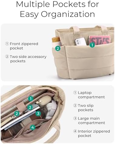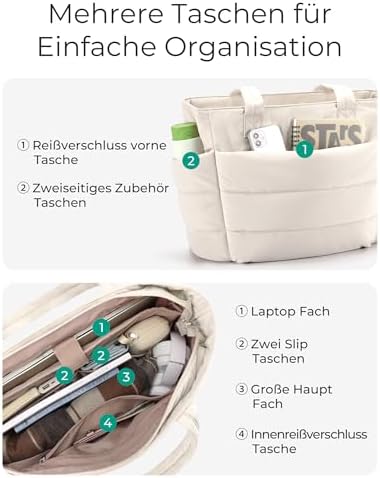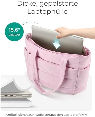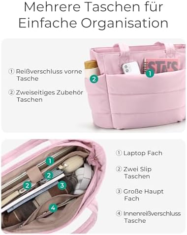 Vielfältige Teilen: Ein großes Hauptfach für 15,6 Zoll Notebooks, A4-Ordner und Kleidung, zwei taschenförmige Seiten und ein vorderes Fach für rasches Zutreffen. Perfekt als Bürokleidung, Laptoptasche oder Einkaufstasche.