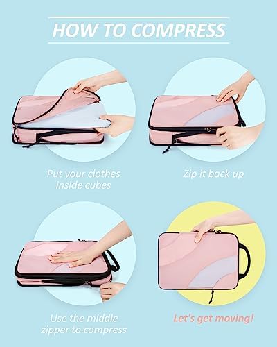 Sparen Sie bis zu 60% Platz: Genau wie ein Vakuumiergerät funktioniert, hilft der Kompressionsreißverschluss im Mittel der Packung, überschüssige Luft auszustoßen, was bis zu 60% Platz spart. Diese Reiseresteorganisatoren halten Ihre Kleidung ordentlich, was mehr Platz in Ihrem Gepäck freigibt.