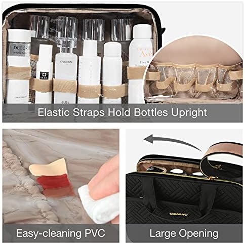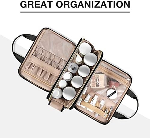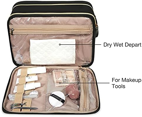 Optimale Organisation: Ein großes Hauptfach bietet Platz für all Ihre Reiseutensilien. Nebenbei zwei seitliche PVC-Taschen für Make-up-Pinsel oder andere Werkzeuge. Eine getrennte Trocken- und Nasstasche für nasses Handtuch und Zahnbürste. Und vorne noch eine Reißverschlusstasche, um Handtücher, Handcreme, Schlüssel, Geldbörsen und mehr zu verstauen.