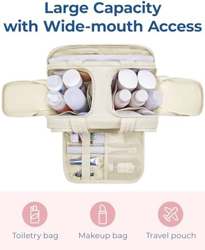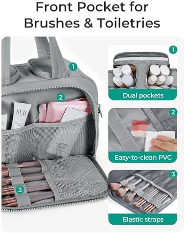 EASY ACCESS & UTIGHT STAND – Vollständiger Auffallungsraum ohne Ablagerung, um auf Gegenstände schneller zuzugreifen. Der Dufflesack mit doppelseitigem, vollständig offenem Design stellt Kosmetikkannen und Toilettengegenstände in der Mitte aufrecht und vermeidet during Transport Spuren.