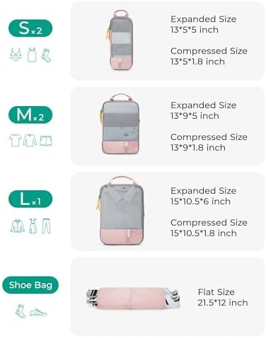 Die Kompressions-Taschen für Kleidung bieten ein Kompartmentdesign mit anpassbaren Teildivisoren. Kleidung, Schuhe, Hüte und andere Gegenstände können in Kategorien aufgeteilt werden, um Verwirrtheit im Gepäck zu vermeiden.