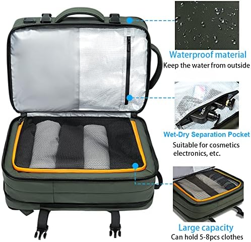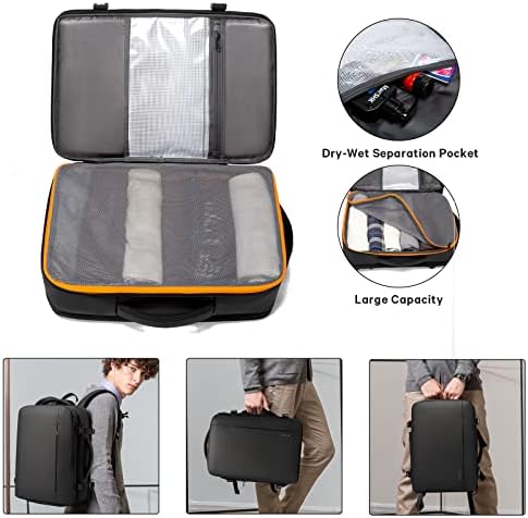 Vor dem Ausfahren beträgt der BANGE Rucksack 22 Liter, die Maße sind 46 x 30 x 14 cm; nach dem Ausfahren 35 Liter und die Maße befinden sich bei 46 x 30 x 25,9 cm. Sie können den Reißverschluss und die Schnallen nach Ihren Wünschen erweitern, was das Design individuell gestaltet. Die beiden Griffe oben und einer Seite ermöglichen einen einfachen Wechsel zwischen Rucksack und Koffer. So kann er vertikal oder horizontal getragen werden. Der Gepäckgurt auf der Rückseite ermöglicht es, über den Gepäckschlauch zu schieben, der Rucksack ist ideal für 3–5 Tage tägliche Reisen.