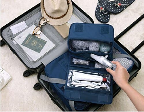Mit seinem mehrstufigen Design bietet der Beutel eine hohe Kapazität. Er verfügt über mehrere Fächer, die perfekt zum Platzieren von verschiedenen Toilettenartikeln oder Kosmetika eingerichtet sind.