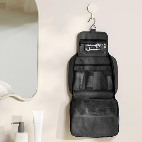 Bansga Groß Kulturbeutel Damen & Herren – Gross Kulturtasche Zum Aufhängen – Waschtasche für Frauen & Mädchen – Beige