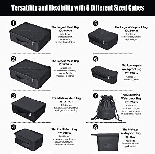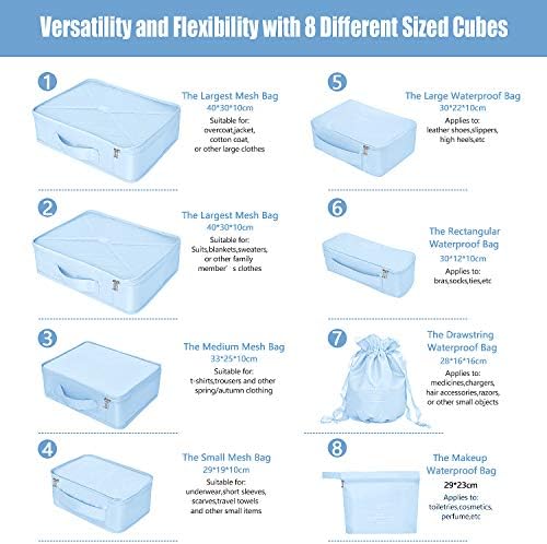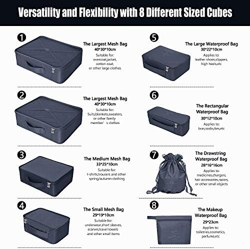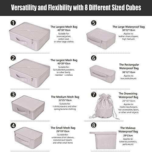 Wenn wir reisen, brauchen wir viele Reisecone. Unsere neueste 8-Teil-Kombination ermöglicht es Ihnen, all Ihre Reisecone in eigenen Speicherorten zu organisieren. Für beispielsweise Schuhbeutel, Kosmetikbeutel, Unterwäsche-Beutel, elektronische Produktspeicher und mehr ist Platz reserviert.