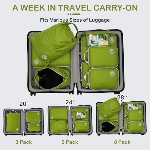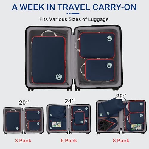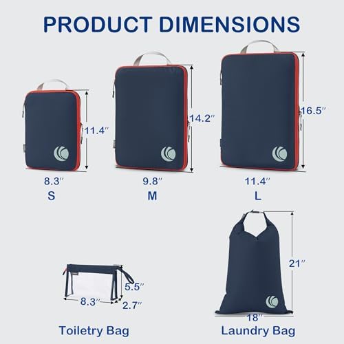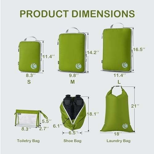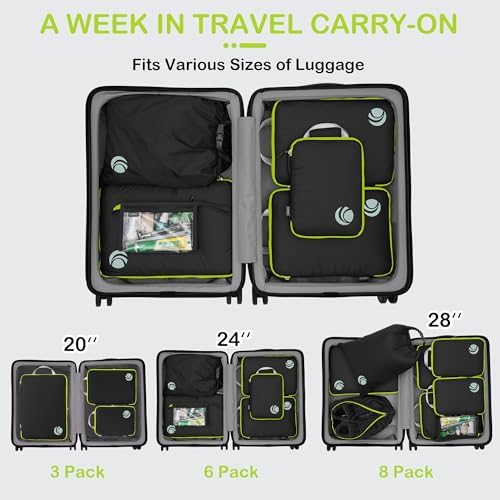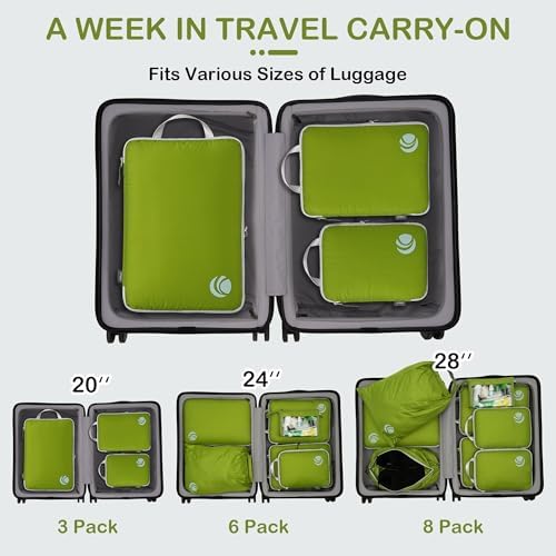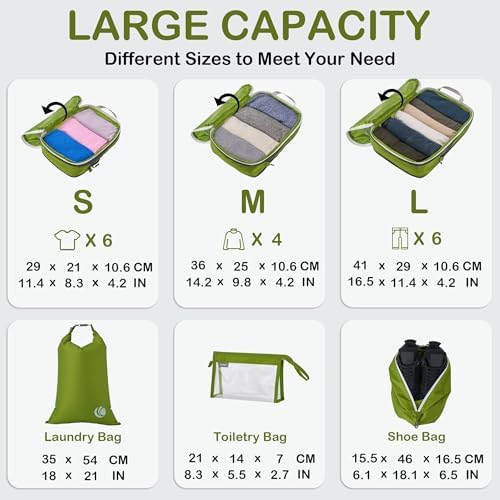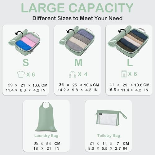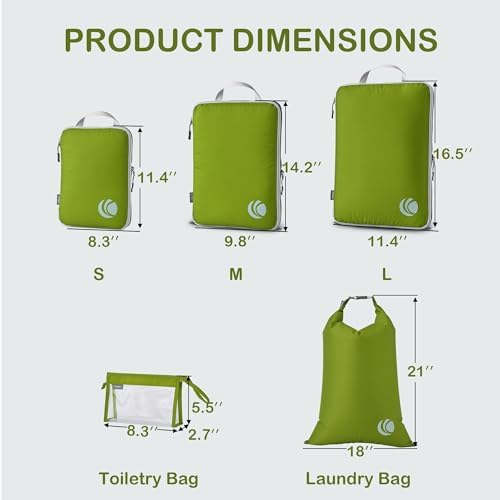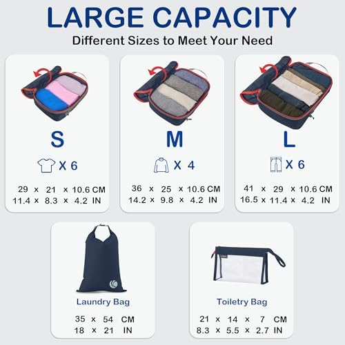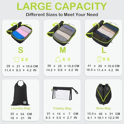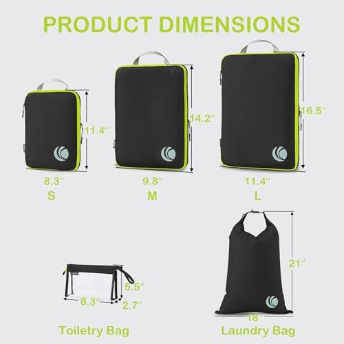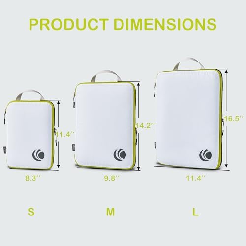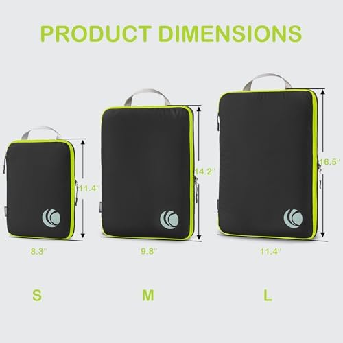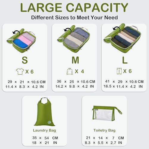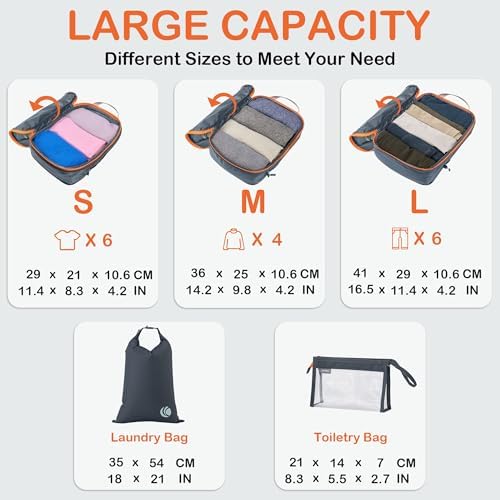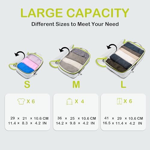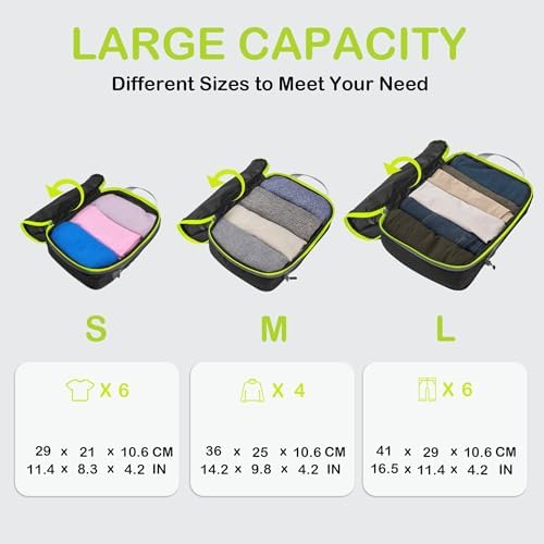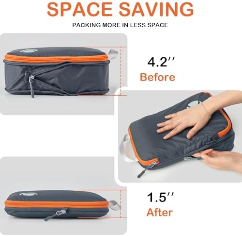 Organisieren und Platz sparen: Kompressions-Packtaschen für Koffer sind unerlässliches Reisezubehör für Rucksäcke, Gepäck und Koffer. Es ist bequem, Ihre Artikel in verschiedenen Größen von Packtaschen zu organisieren. Füllen Sie das Small mit Socken, Unterwäsche und Badeanzügen, einige T-Shirts in Medium und die Large für Hosen, Shorts und Leggings.