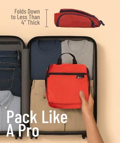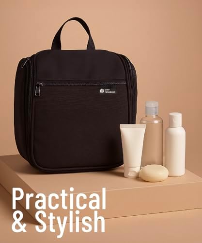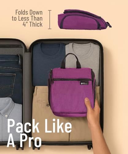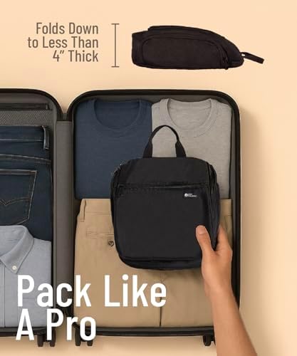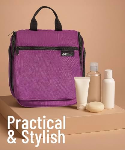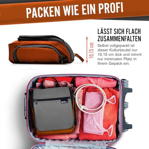 PERFEKTE GRÖSSE: Eine schöne Tasche muss groß genug sein, um praktisch für Ihre Reiseprodukte zu sein, und gleichzeitig fits in Ihren Koffer oder Rucksack. Diese hängende Kulturbeutel ist ca. 25 cm H x 25 cm B x 10 cm T groß, mit genügend Platz für Flaschen und anderen Artikeln. Sie lässt sich aufklappen, sodass sie schön und kompakt in Ihren Koffer passen.