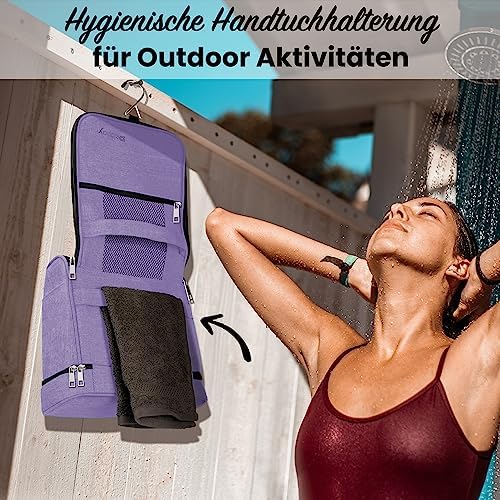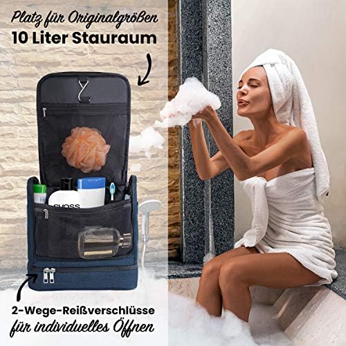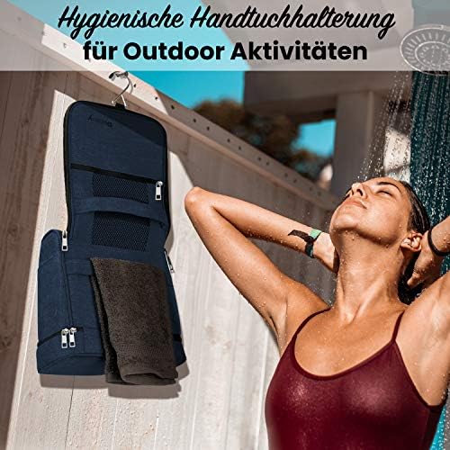 Solltest Du noch das Meer besteigen und eine Dusche anschließend begehen? Verstaue deine nasse Badehose oder den Bikini im unteren Zweitfach der Waschtasche. Selbst der Nassrasierer oder die Zahnbürste finden eine sichere Aufstellung hier!