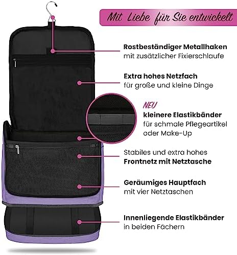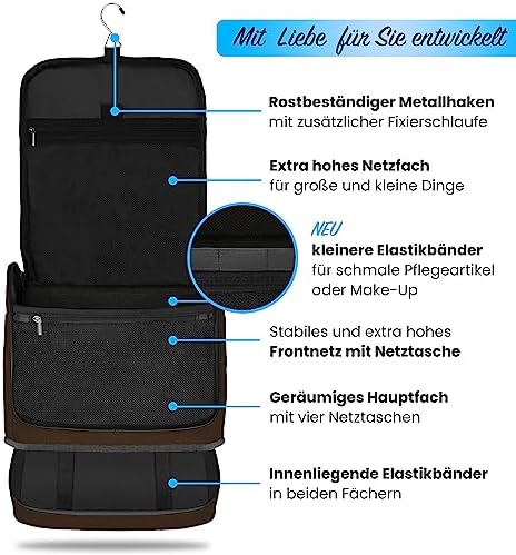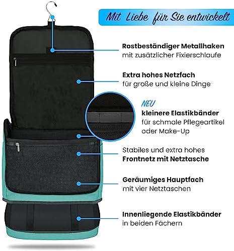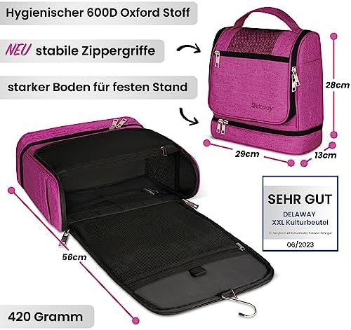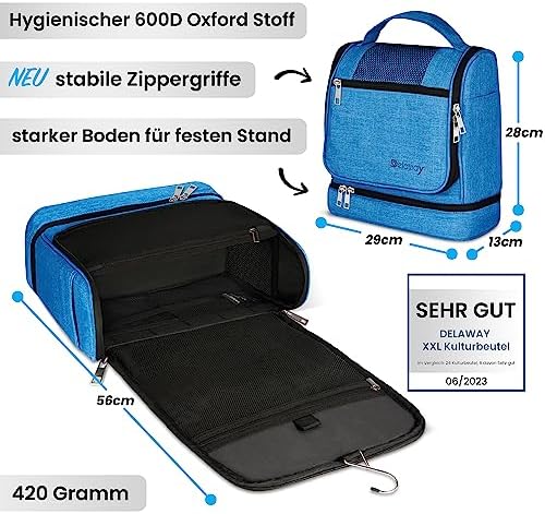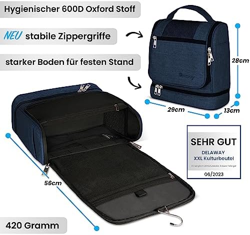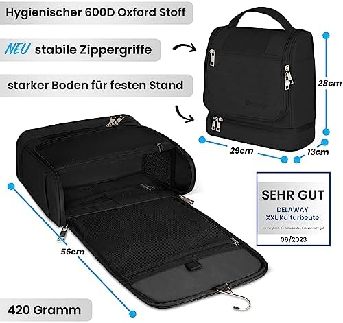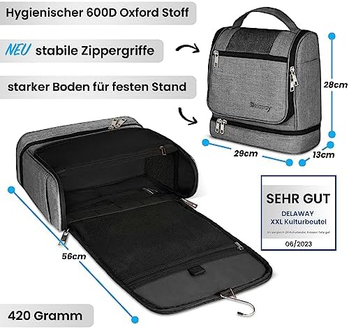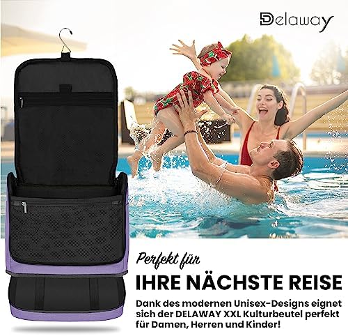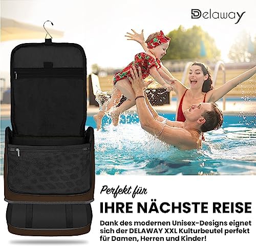 DELAWAY XXL Kulturbeutel zum Aufhängen Design 2026 | Große Kulturtasche für Damen & Herren | Waschtasche mit Kofferhalte
