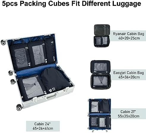 Ordnung aufrecht erhalten: Die ECOHUB-Reise-Organisatorenpassendes Set passt sich Ihren verschiedenen Bedürfnissen an und bietet eine ID-Marke, um einfache Unterscheidung zu ermöglichen. Bag 1 ist ideal für Jacken. Bag 2 und 3 sind mittelgroß; Sie können hier Tops und Hosen verstauen. Bag 4 ist ein unterwärziger Beutel, um Ihre persönlichen Gegenstände vom anderen Kleidungsstücke zu trennen und Ihre Privatsphäre zu wahren. Bag 5 ist ein Kettenschnurbeutel, der Ihnen hilft, Ihre Schuhe separat zu behalten.