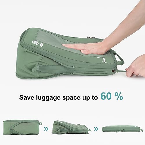 Komprimierter Entwurf speichert mehr Platz: Die ECOHUB-Suitcase-Organisatoren mit zusätzlicher Zip-Area ermöglichen es Ihnen, Ihre Inhalte zu komprimieren. Öffnen Sie den komprimierten Bereich, um Platz für weitere Artikel später zu schaffen. Durch das Komprimieren der Luft im Material und das Schließen der Reißverschlusstasche werden die Sachen enger gestopft und mehr Platz wird bei Ihrem Gepäck geräumiger.