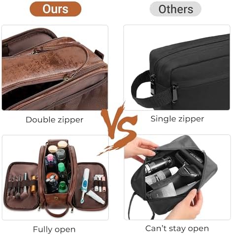 – Der Kulturbeutel ist mit hochwertigem PU-Leder hergestellt und wasserdicht. Das waterfreie Nylonfutter hält Feuchtigkeit ab und das Premium-Reißverschluss und verstärkte Nähte sorgen für lange Dauerhaftigkeit.