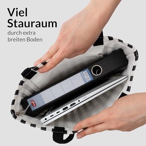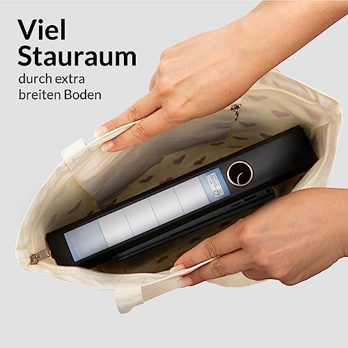 Nichts ausgelassen? Kein Problem! – Die Jutetasche verfügt über einen breiten Boden, was den Transport von Einkäufen, Aktenordnern oder Laptops problemlos ermöglicht. Nutzen Sie die Tragetasche auch als Wickeltasche, Kinderwagentasche oder Strandtasche.