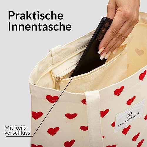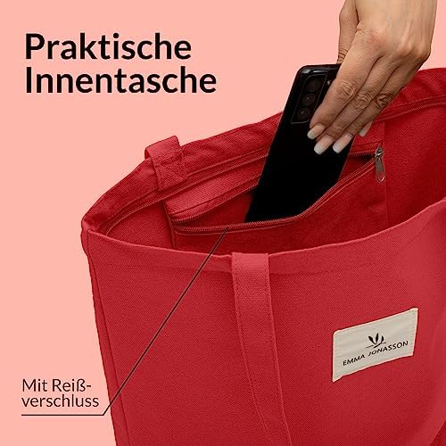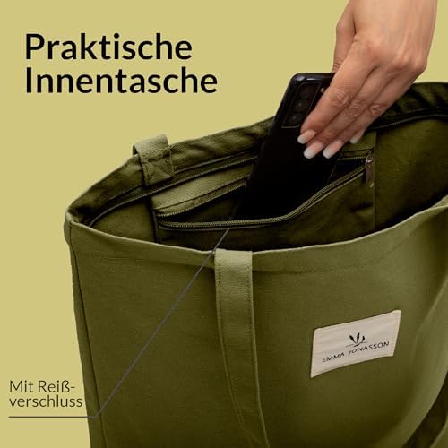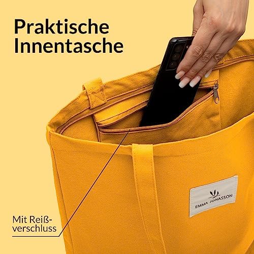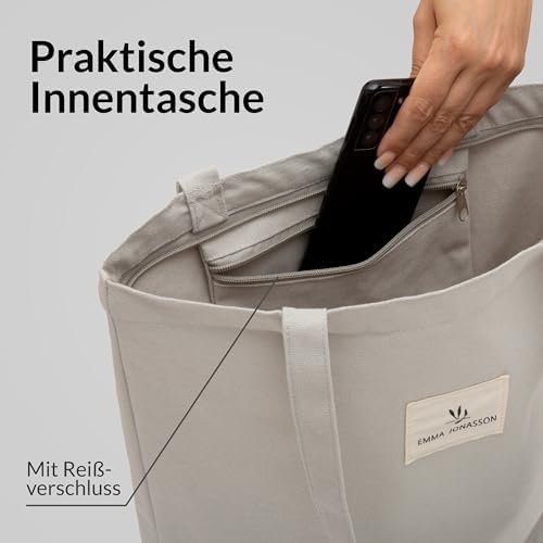 Keine Suche mehr für kleinere Gegenstände! Die praktische Innentasche unserer Baumwolltasche bietet genügend Platz für Ihre Schlüssel und Ihr Handy. Damit finden Sie immer alles in Ihrer Handtasche.