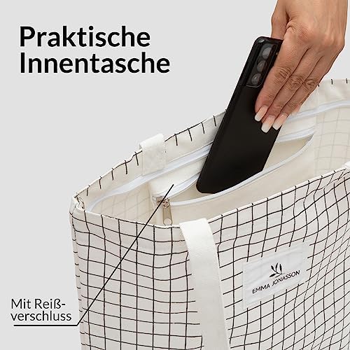 Stilvolle Begleiterin: Der Emma Jonasson Jutebeutel verbindet ansprechendes skandinavisches Design mit dauerhafter Stoffqualität in einer zeitlos schönen Shoppingtasche für Damen.