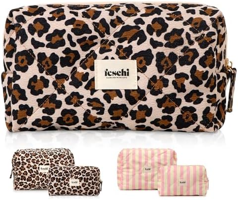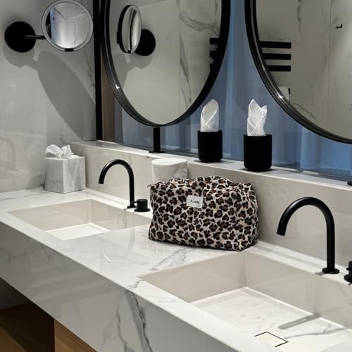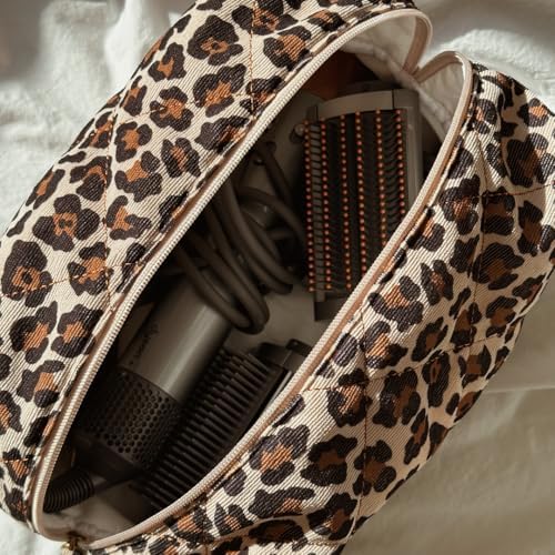Der hübsche Toillettenbeutel im Léo-Design ist ein stilvolles Ablenkungsobjekt in jedemHotelzimmer.