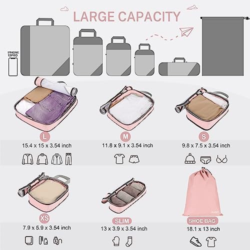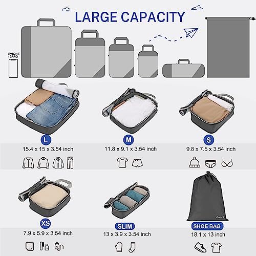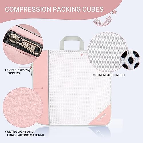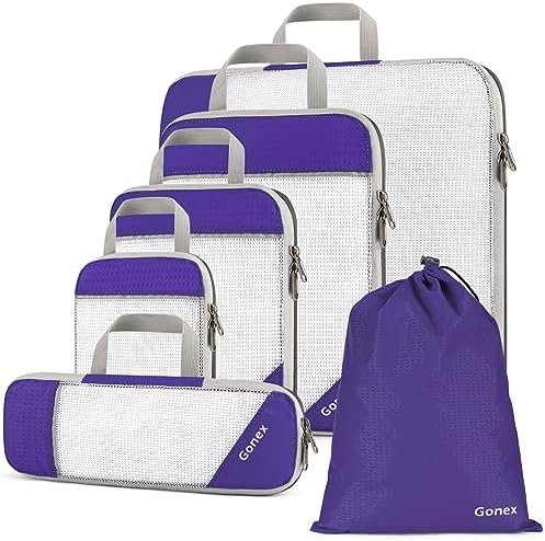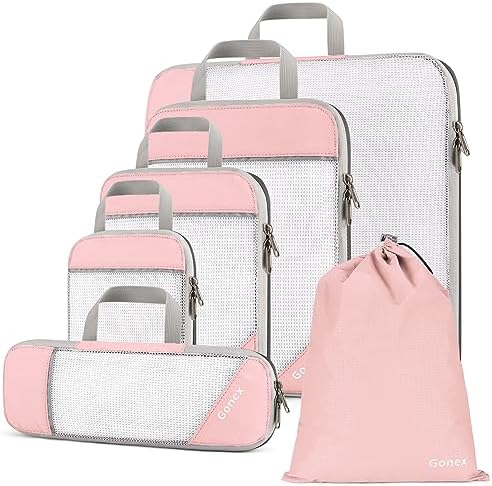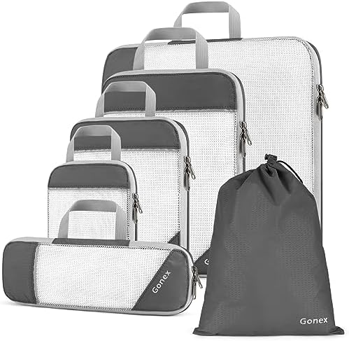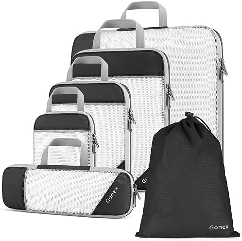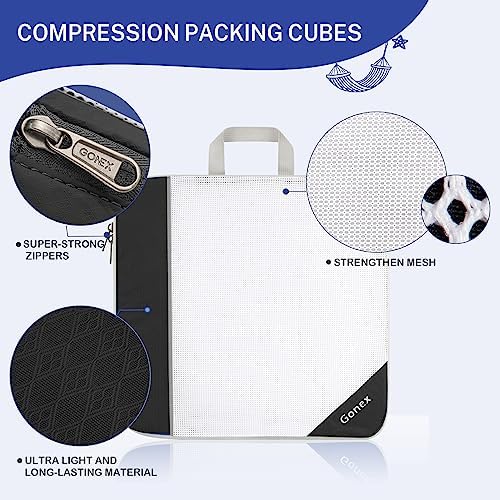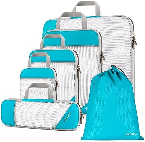 Gonex Compression Packing Cube 6-teilig, robust & langlebig | Verpackungswürfel, Kleidertasche, Koffer-Organizer, Aufbew