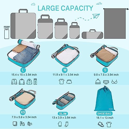 Diese Packwürfel bieten Komfort und praktische Lösungen für jeden Bedarf. Sofort organisieren und transportieren Sie Ihre Wäsche oder andere persönliche Gebrauchsgegenstände.