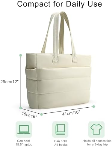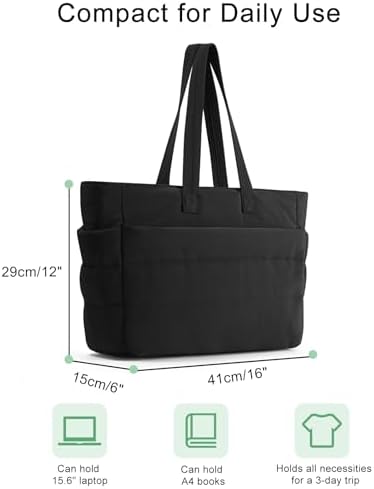 Mit den Maßen 16″x 6″ x 12″/41 x 15 x 29 cm und einem Volumen von 20 Litern bietet diese gesteppte Tote Bag reichhaltigen Platz für alltägliche Dinge wie einen 15,6″ Laptop, Regenschirm, Wasserflasche, Sportkleidung und Schuhe. Dies ist der ideale Platz für alles, was Sie benötigen.