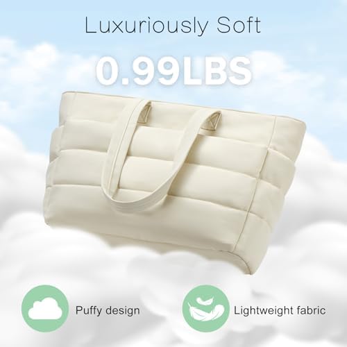 Diese gesteppte puffy Tote Bag wird aus ultraleichtem Taslan-Gewebe (nur 450 g) gefertigt. Das Gewebe ist solide genug, um robust zu bleiben, aber weich genug, um Ihren Schultern zumuten zu können, ohne sie zu belasten.