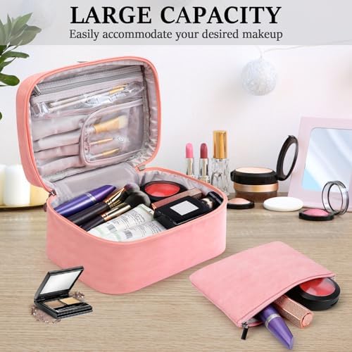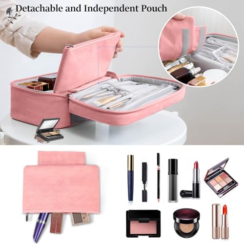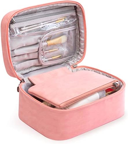 🎄Große Kapazität: Die Kosmetiktasche hat eine kleine transparente Tasche mit Reißverschluss, eine abnehmbare Klettverschließtasche, 4 separierte Fachüberraschungen für Make-up Pinsel, eine Wandtasche und genügend Platz für Ihr Make-up. Das klare Raumlayout macht es einfacher, Foundation, Lotion, Lippenstift, Lidschatten und andere Kosmetika zu organisieren.