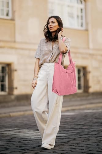 Das Damen-Tasche ist aus strapazierfähigem Cordstoff gefertigt. Der Stoff ist weich, leicht und wasserabweisend, und die Farbe verblasst nach mehreren Waschzyklen nicht. Doppelte Nähte sorgen für eine sicherere Verbindung der Röcke an der Tasche.