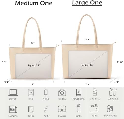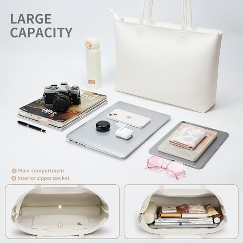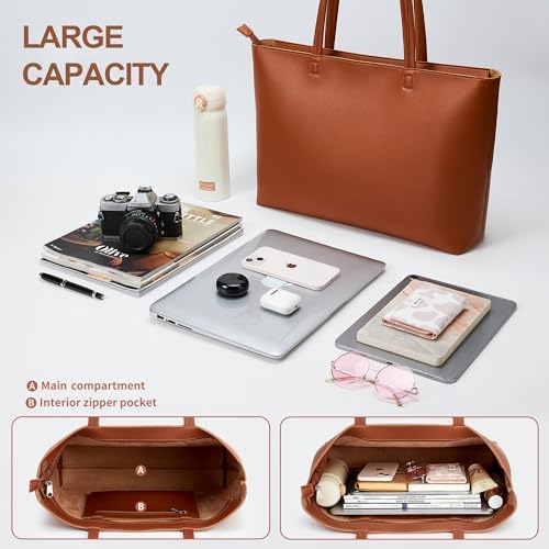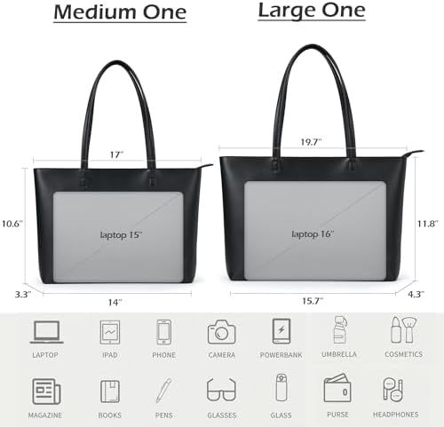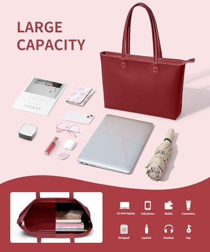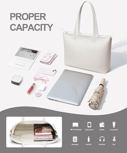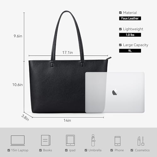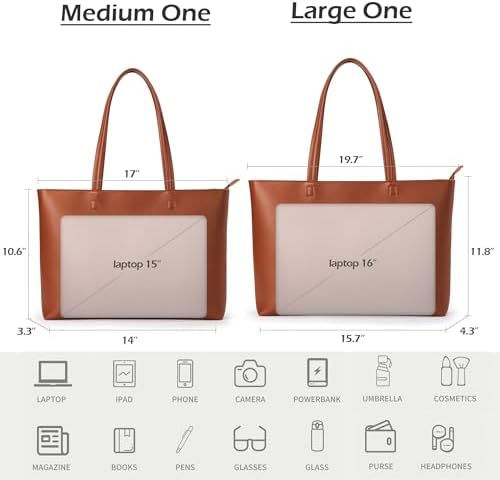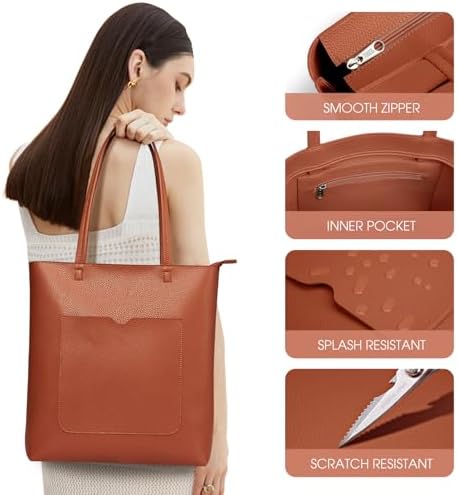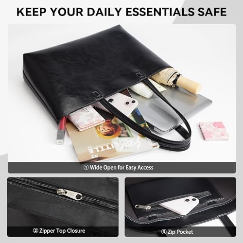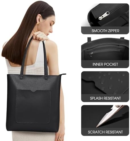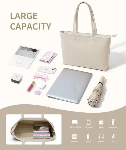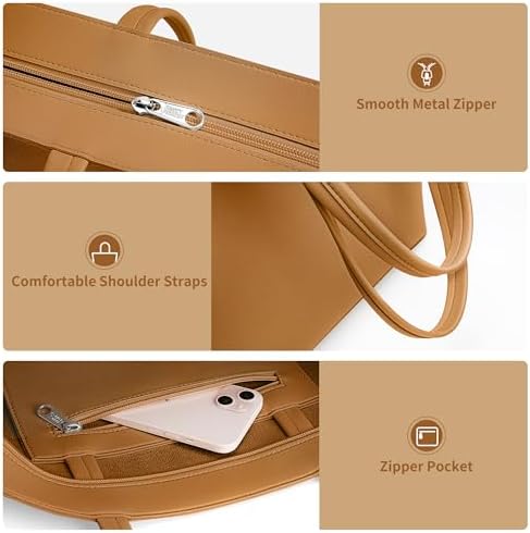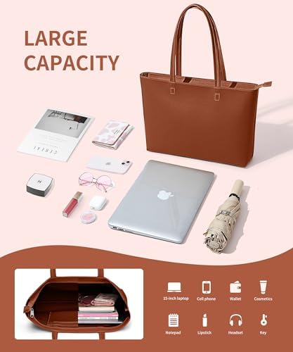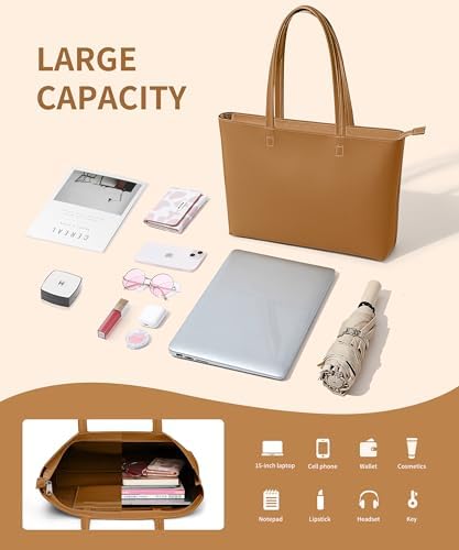 KALIDI Wasserdichte Handtasche Damen für Arbeit und Reisen | KALIDI PU Leder Tote Bag Damen mit Reißverschluss für Eink