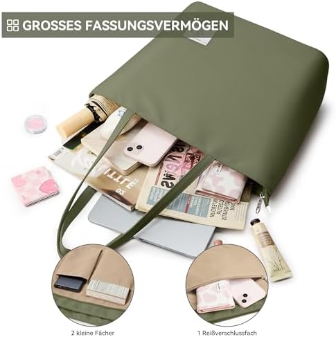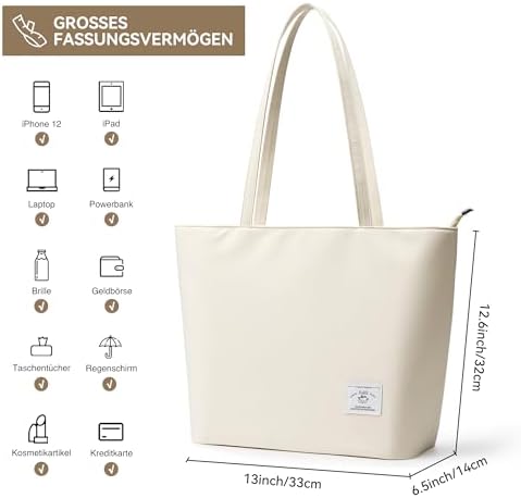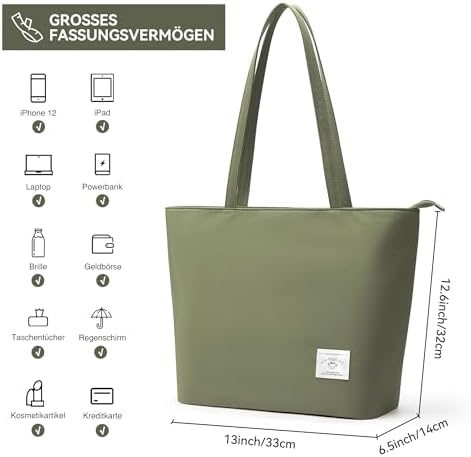 KALIDI Wasserdichte tote Bag – Ideal für Arbeit und Uni mit Reißverschluss und Schulterband