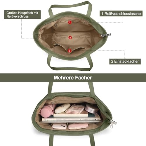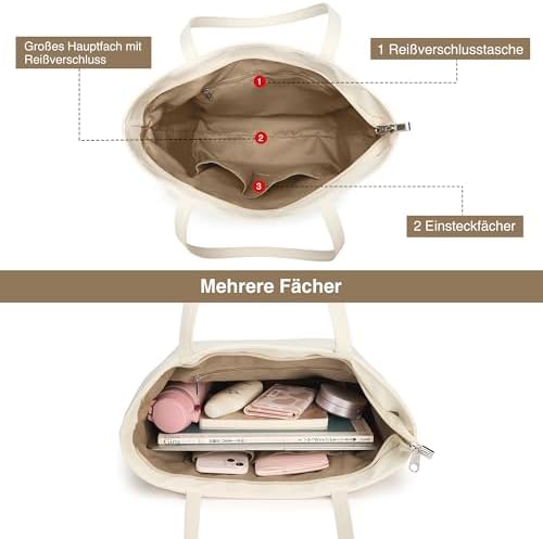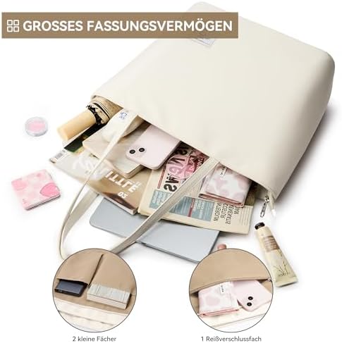 • Sicherheit: Neben dem Hauptfach verfügt die Tasche über eine Reißverschlusstasche im Inneren, um Wertsachen wie eine Geldbörse oder Schlüssel sicher aufzubewahren.