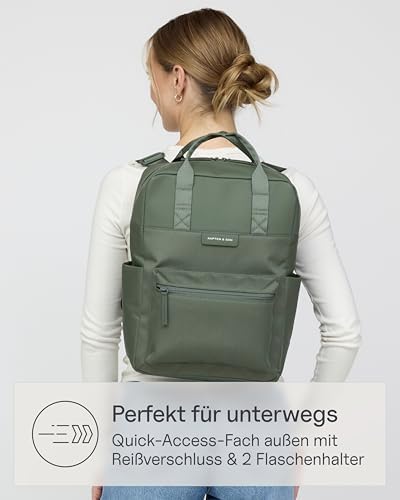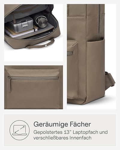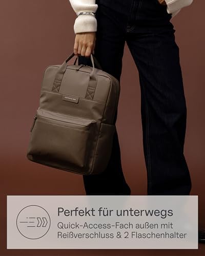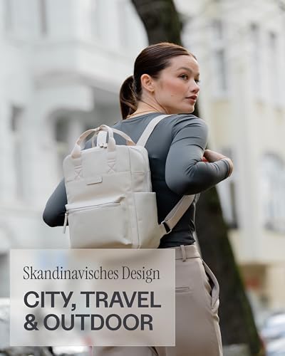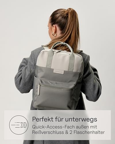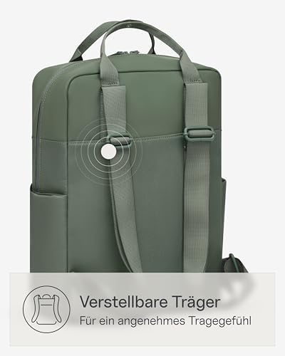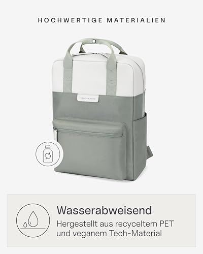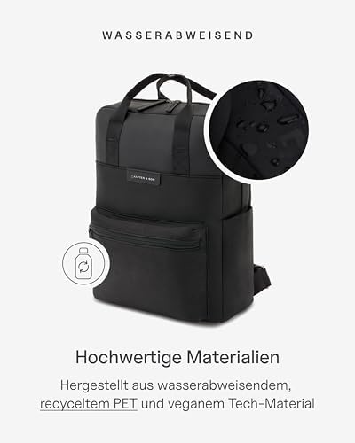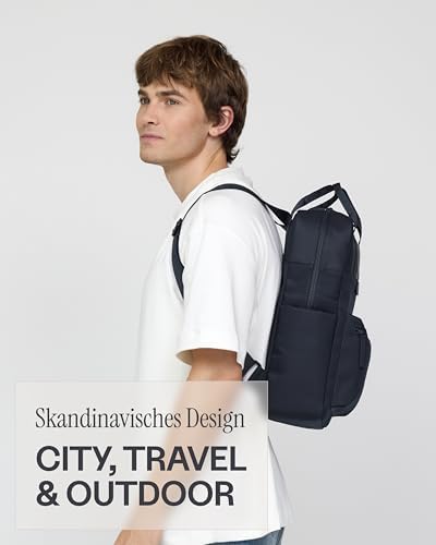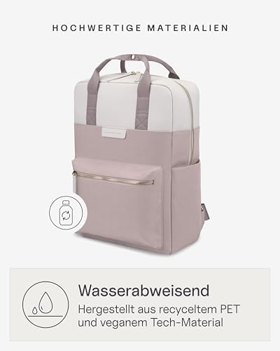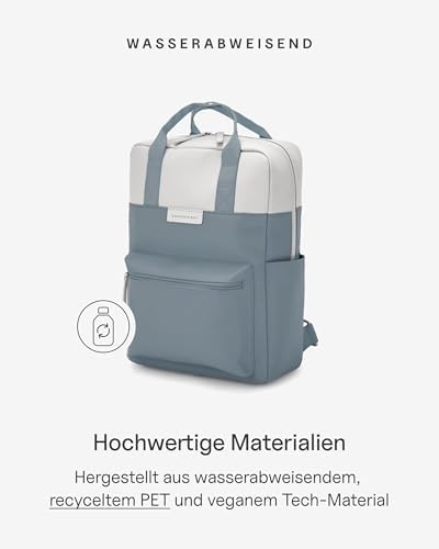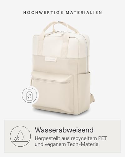 HOCHWERTIGE MATERIALIEN: Der Rucksack ist aus glattem, wasserabweisendem und veganem Tech-Material und recyceltem PET hergestellt. Dies gewährleistet Langlebigkeit und eignet sich für umweltfreundliche Verhaltensweisen.