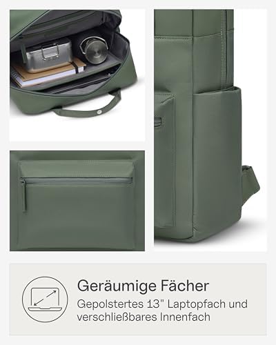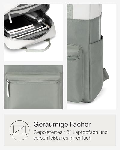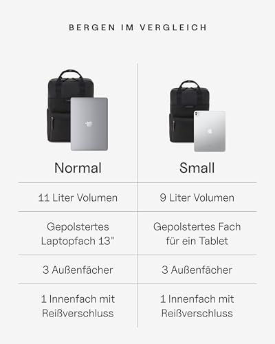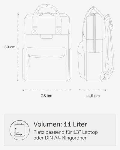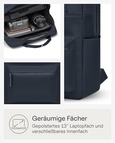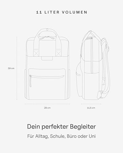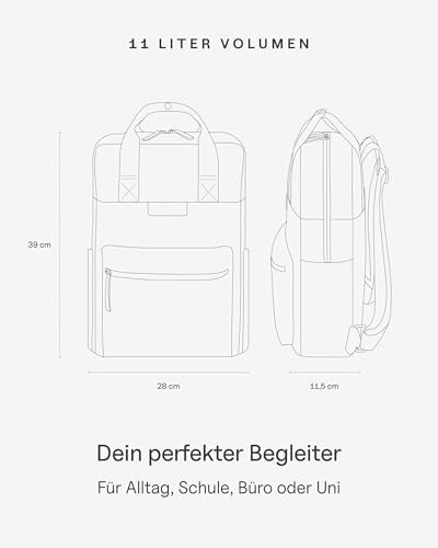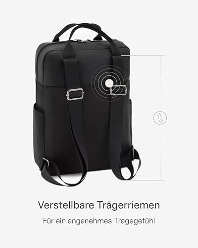 PRAKTISCH & KOMPAKT: Mit 9 L Sprechraum bietet der Black Rucksack genügend Platz für alltägliche Bedürfnisse. Es gibt ein gepolstertes 13 Zoll Laptopfach, ein weiteres Innenfach und drei Außenfächern.