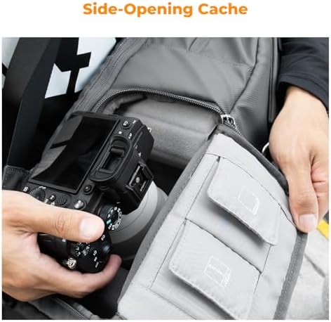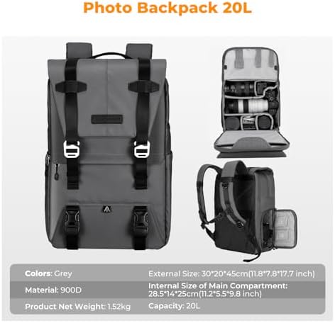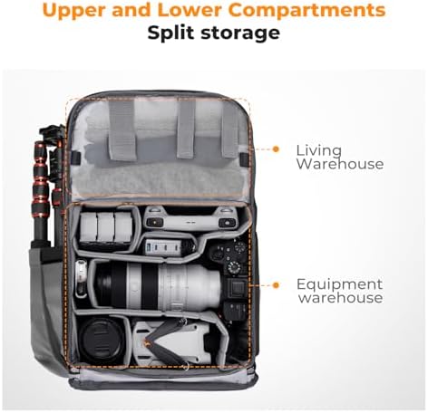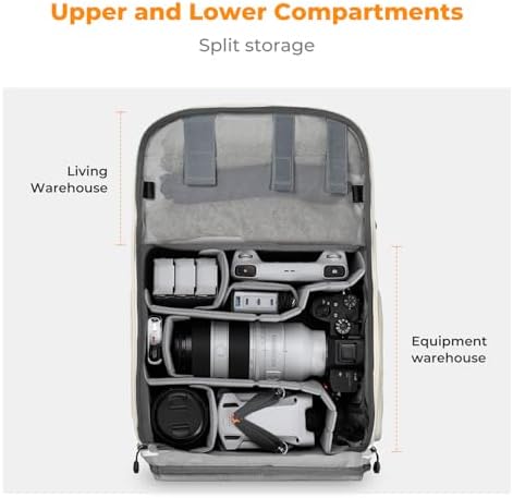 - Hauptfach: Platz für 1 Kamera, 4 Objektive, Stativ und weiteres Fotozubehör, oder senkrecht DJI Mavic Drone