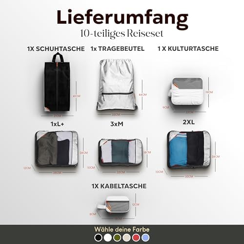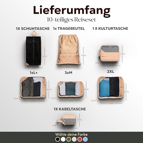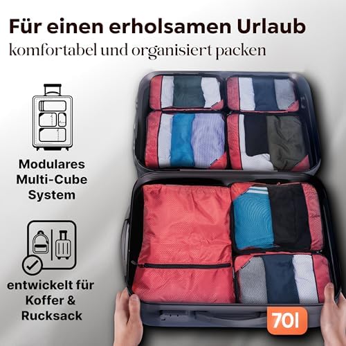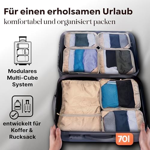 Dekorierte komprimierbare Späcklein-Set sind für den Reisekoffer (70 x 50 x 30 cm) oder Rucksack (70 L) konzipiert, um Ihren Reisekoffer und Ihren Reisekofferorganisator zu organisieren.