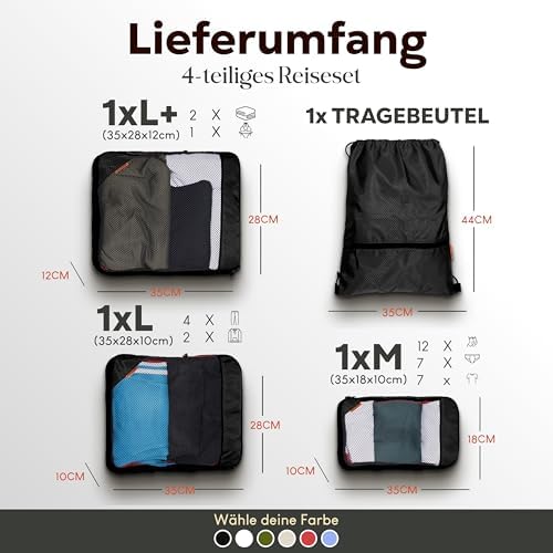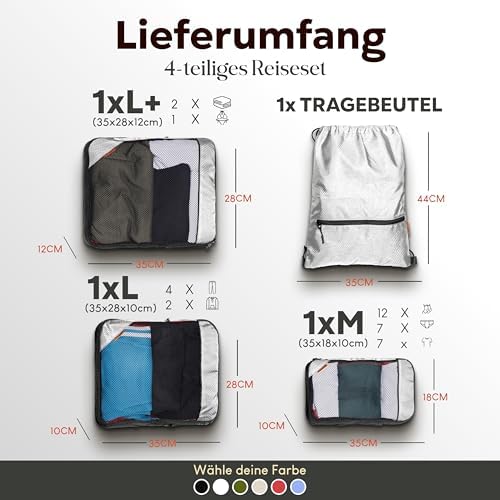 LOONARA Travel Compression Packing Cube Set für mehr Platz im Koffer & Backpack – Packwürfel Compression zur Optimierung