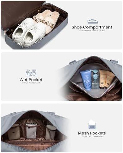 🌼 Mehrere Taschen Design: Dieser Weekender bietet mehrerer Taschenvarianten, um Ihre Aufbewahrungsmöglichkeiten zu verbessern. Mehrere Netzbeutel, mehrere Reißverschluss-Taschen, ein spezielles Schuhfach und ein Kulturbeutel helfen Ihnen, Ihre Reiseartikel gut organisieren.