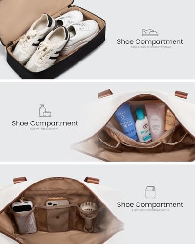 👠 Separates Schuhfach: In dieser Reise-Tasche finden Sie ein separates Schuhfach, das Ihren Schuhen vor anderen Gegenständen schützt und eine saubere Aufbewahrung garantiert. Das Fach ist mit Belüftungslöchern versehen, um ihre Luftzirkulation, Trocknung und Frische zu gewährleisten.