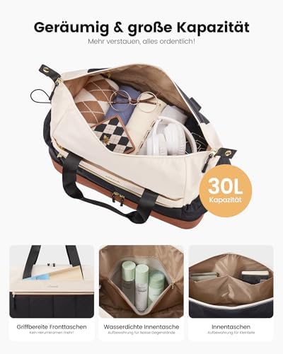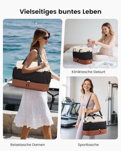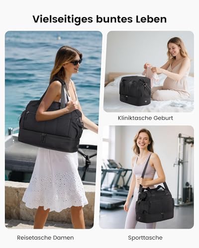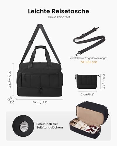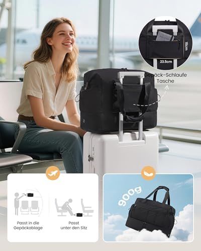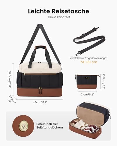Diese Reisetasche Damen (46×20,3×32,5cm / 18,1x8x12,8 Zoll) ist perfekt für 2-3 Tage. Mit nur 800g ist sie leicht, was ihren alltäglichen Gebrauch erheblich erschwert. Sie ist aus robustem Material und langlebig – perfekt für alle Arten von Reisen.
