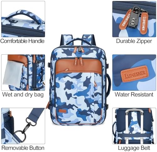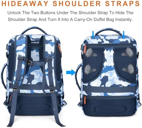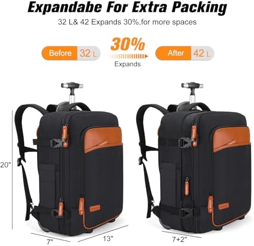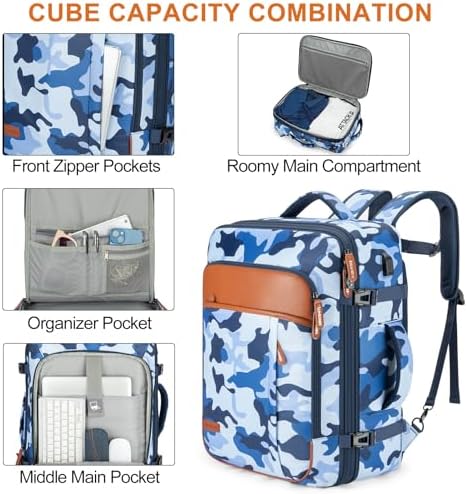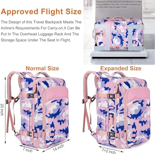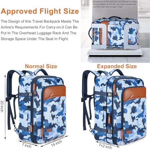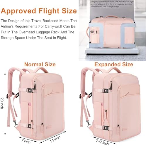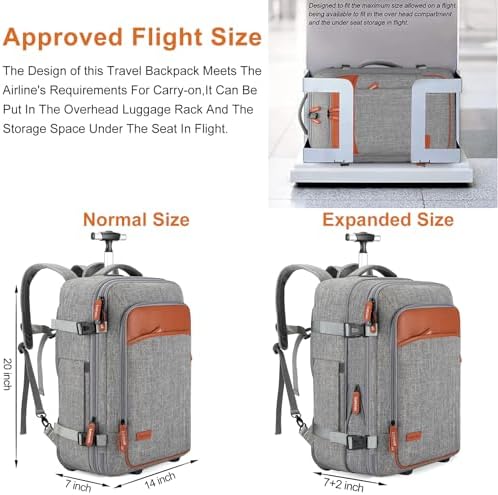 GROSSE KAPAZITÄT UND ERWEITERBAR: Dieser extra große Reiserucksack mit erweiterbarer Funktion bietet Ihnen mehr Packkapazität von bis zu 40 l. Wenn Sie den Reißverschluss öffnen, erhalten Sie mehr Stauraum und können problemlos Packwürfel, Make-up-Taschen, Outfits, Kameratasche und Ausrüstung für 3 bis 3 Personen für 7 Reisetage unterbringen. Der Handgepäckrucksack passt in Standardhandgepäckgröße über den Kopf und unter den Sitz und ist ideal für Männer, Frauen, Wochenendreisende oder Gelegenheitsurlauber.