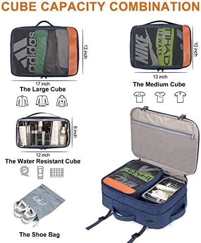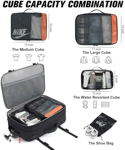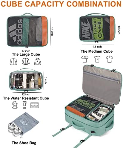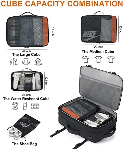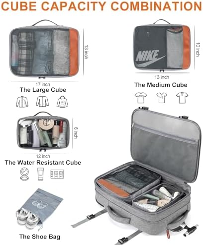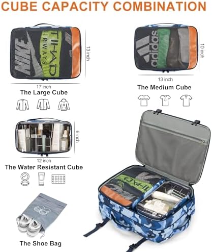EXTRA 4 PACKWÜRFEL: Dieser Wochenendreiserucksack wird mit vier Packwürfeln geliefert. Ein großer Würfel für Pullover, Jacken, Hosen. Ein mittlerer Würfel für Hemden, Shorts. Ein kleiner, wasserdichter Würfel mit transparenter Seite für einen klaren Überblick über Toilettenartikel. Es gibt auch eine Schuhtasche. Halten Sie Ihre Sachen ordentlicher und organisierter. Dienen Sie gut als Handgepäck für Flugzeuge, als Wochenendrucksack, als Reisetasche für persönliche Gegenstände oder als Reisetasche.