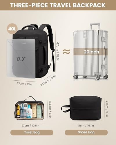 – 17-Zentimeter-Größe: 47 x 33 x 20,5 cm / 18,5 x 13 x 8,1 Zoll, Kapazität: 40 L ≈ 20-Zentimeter-Koffer.