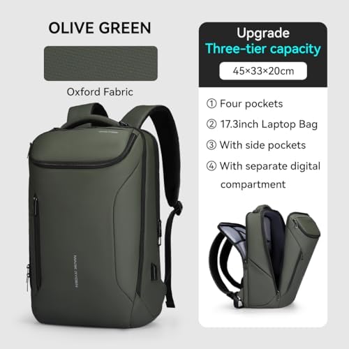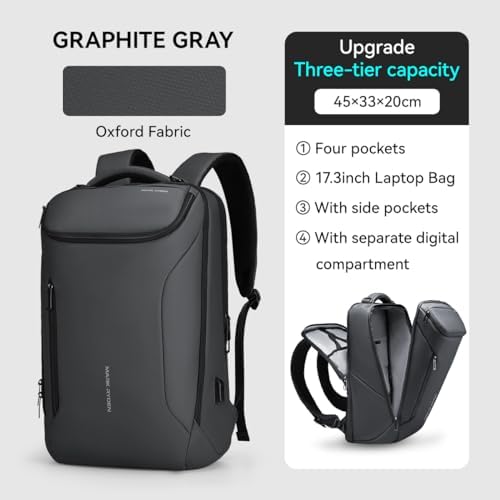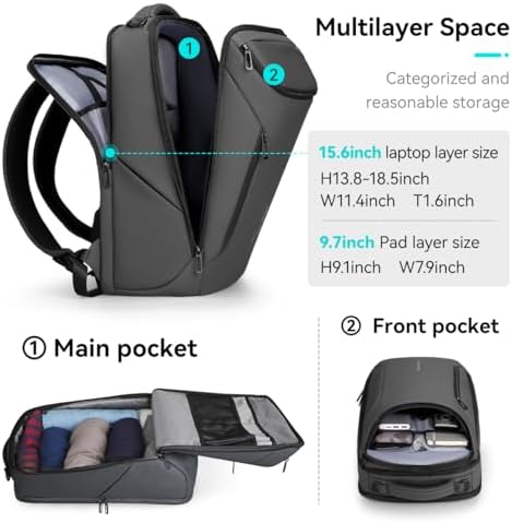 Mit einer Größe von 17.7 x 12.9 x 7.8 Zoll kann dieser Rucksack einen Laptop bis 17.3 Zoll in einem speziellen Fach beherbergen. Er ist auch mit 1 Vordertasche, 2 * Laptopfächern, 4 funktionalen Innentaschen und einem separaten Hauptfach ausgestattet. Ob Sie Computer, Kleidung, Kopfhörer oder Magazine benötigen, alles wird geordnet und geschützt.