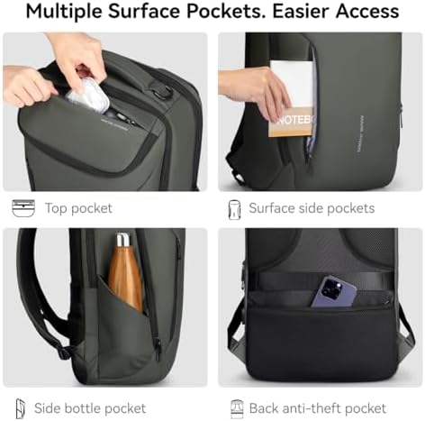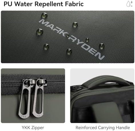 Wir verwenden einen haltbaren [YKK-Reißverschluss] und ein hydrophobes molekulares Material, das Ihren Laptop, Ihre Kleidung und wichtige Dokumente vor Regen schützt. Der schwarze Modell ist aus PU+Nylon, das grau/grüne Modell aus reinem Nylon.