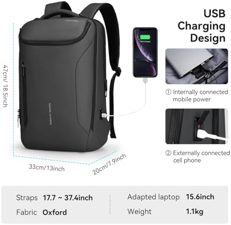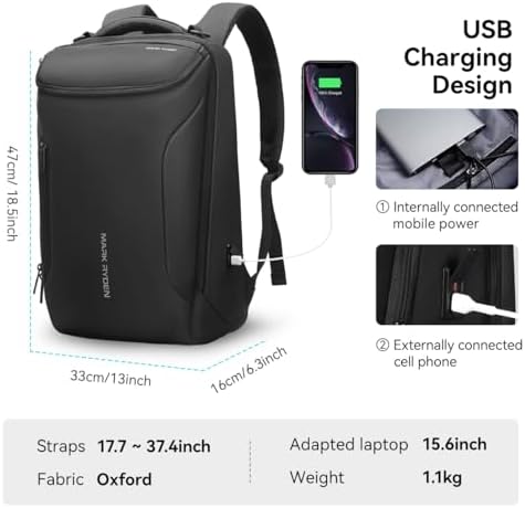 Dieser USB-Rucksack bietet eine praktische Möglichkeit, das Telefon und eine Powerbank während des Gehens aufzuladen. Mit einer außen liegenden USB-Anschluss-Option ist Ladezeit nie ein Problem.