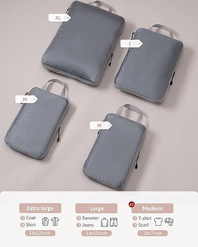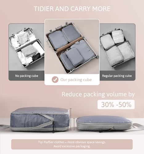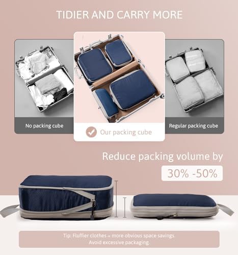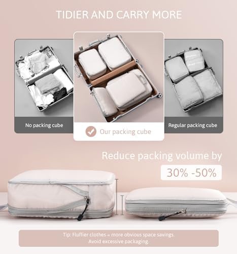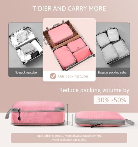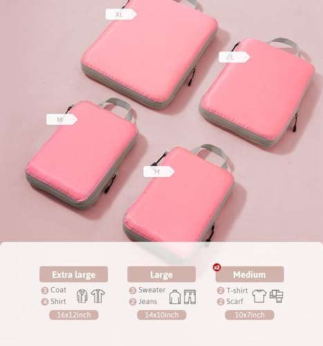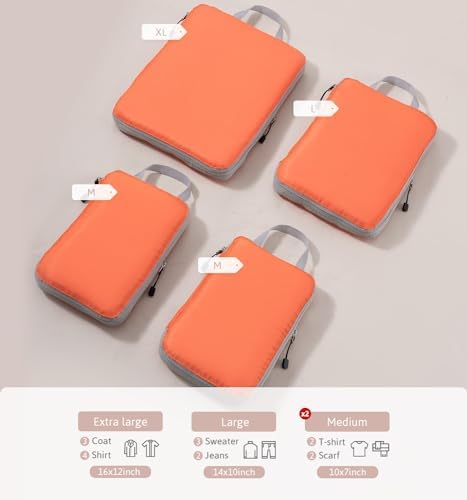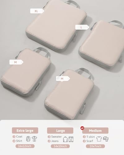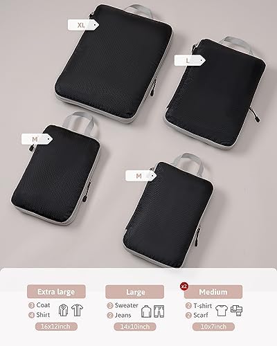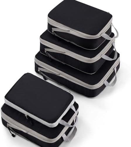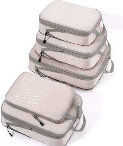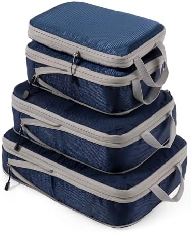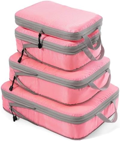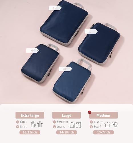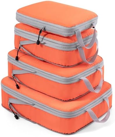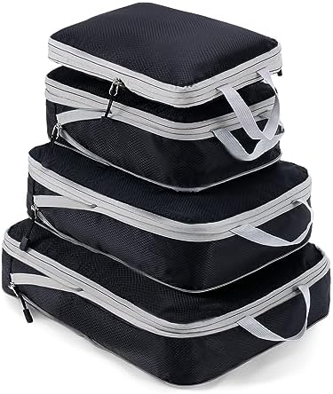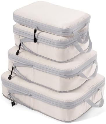 Meowoo 4-teiliges Kompressions-Packwürfel Set – Platzsparend für Handgepäck & Koffer – Wasserdichter Kofferorganizer – i