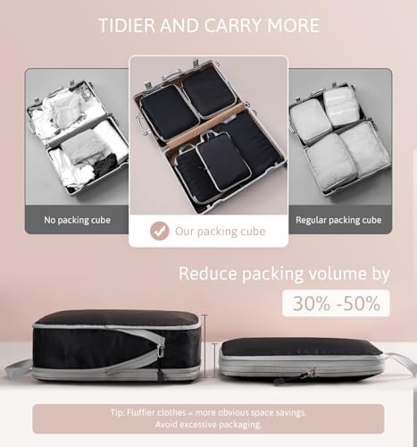 ❤ Selbstverstärkender Stauraum: Diese Packtaschen bieten großes Inneres und sind für Koffer und Rucksäcke geeignet. Sie bieten Platz für Sie und Ihre Familie, um Reisekleidung, Schuhe, Toilettenartikel und Rasierzeug zu transportieren. Dank der praktischen Kompressionswürfel gibt es weniger Durcheinander in Ihrem Gepäck.
